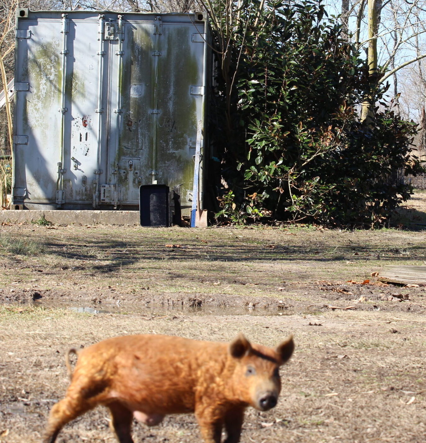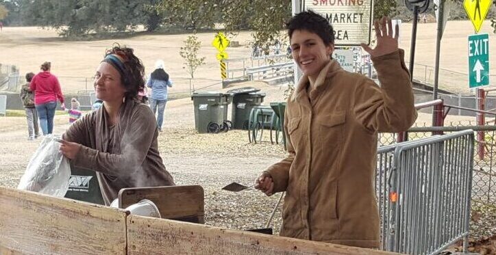 En plus de ses cochons, elle possède poulets, canards, chevaux, moutons et chats. Elle fait aussi de délicieux déjeuners tous les samedis matin au marché bio de Lafayette avec Kelsey (sa très gentille copine-presque-soeur qui l’aide aussi sur la ferme) et elles démarrent ensemble un food-truck.