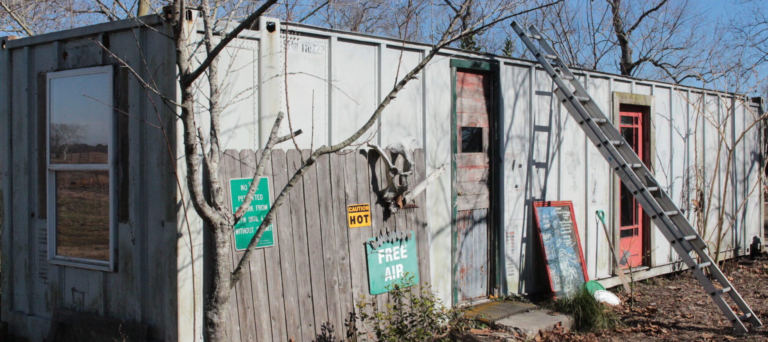 Nous avons dormi dans un conteneur sans chauffage et comme il fait faisait particulièrement froid (il a fait jusqu’à -5C la nuit), nous avons passé la plupart des soirées dans sa maison (à jouer / jaser / boire du vin / s’occuper des enfants / regarder un film les huit entassés par terre dans une mini salle de jeu).