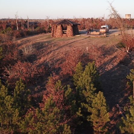 On se dirige vers Austin et ho surprise! il y a des côtes. Depuis notre entrée en Floride que nous sommes au niveau de la mer (ou en dessous) et que notre entourage est marécageux. Ça nous rappelle qu’Eufémionne n’est pas très puissante et nous fait craindre les montagnes à venir. On s’arrête dans un point d’observation et Guillaume tombe en amour avec un bébé chèvre domestiqué.